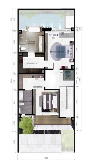 The second floor offers a beautifully integrated space for family connection and relaxation. A bright balcony overlooking the residential road invites natural light and fresh air, while the living, dining, and kitchen areas flow harmoniously for both everyday living and entertainment. This level also features a guest bedroom with an ensuite bathroom and a private pool, creating a resort-inspired ambiance within the comfort of your home.