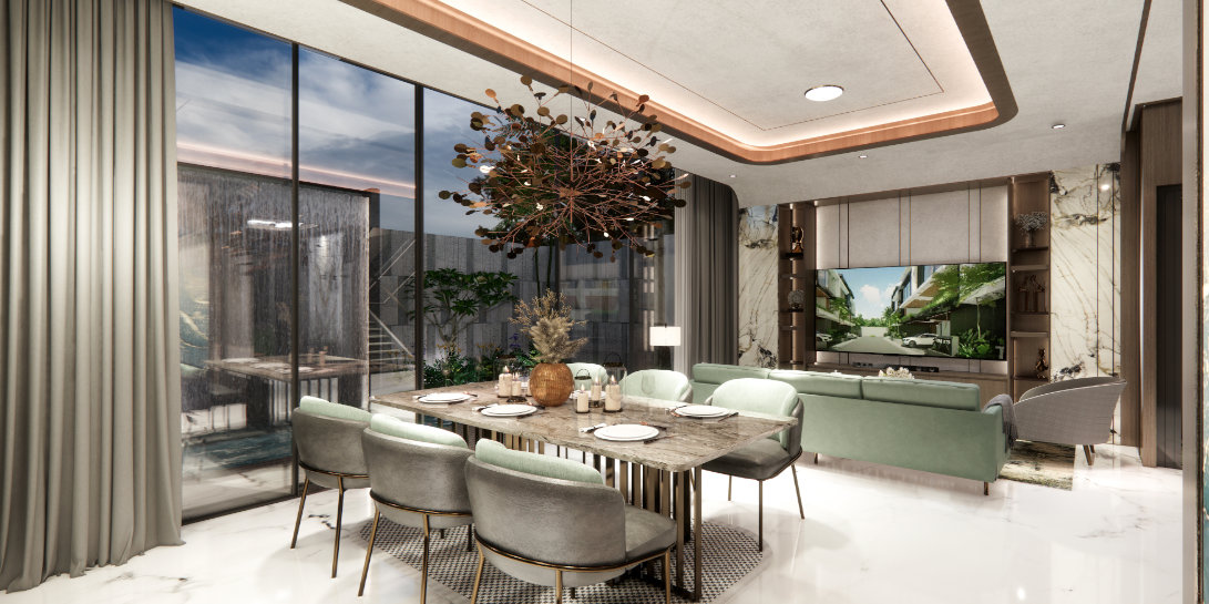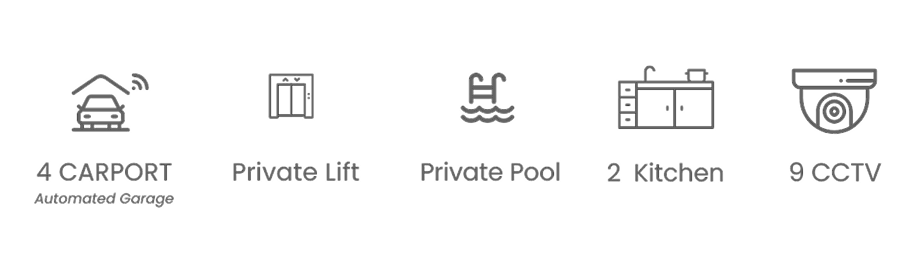 Modern three-storey home designed for comfort and practicality. It features a private lift, private swimming pool, and an automatic garage. With a well-balanced layout and essential premium features, Violette offers comfortable modern living.